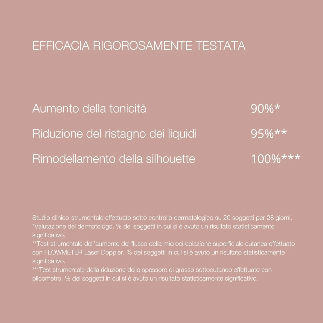 L’alleato ideale per un corpo tonico e una silhouette ridefinita dalla triplice azione: drenante, rimodellante e tonificante.