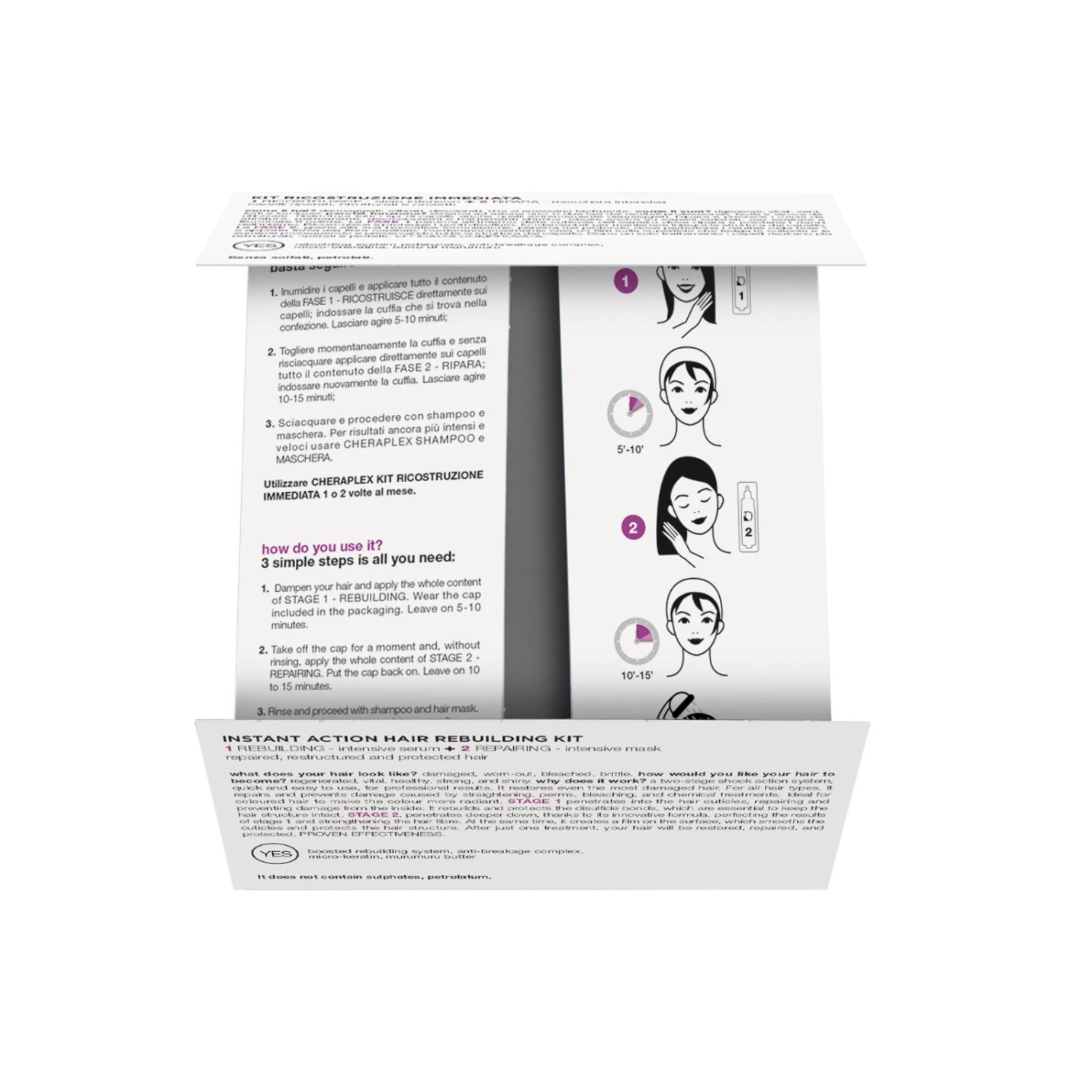 Sistema ad azione urto in due fasi dai risultati professionali, facile e veloce da utilizzare. Ristruttura tutti i tipi di capelli, anche quelli estremamente danneggiati. EFFICACIA COMPROVATA