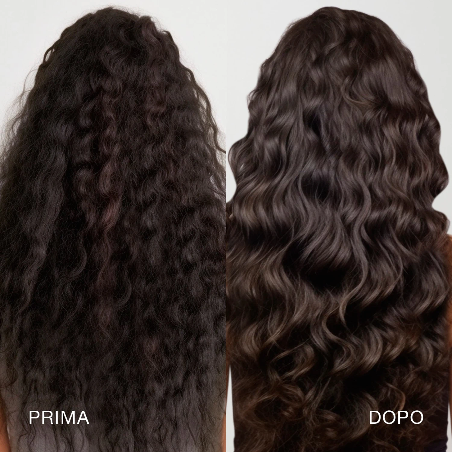 – MASCHERA DISCIPLINANTE MODELLANTE: trattamento elasticizzante e riparatore che avvolge il capello e leviga la superficie, contrastando l’insorgenza del crespo.