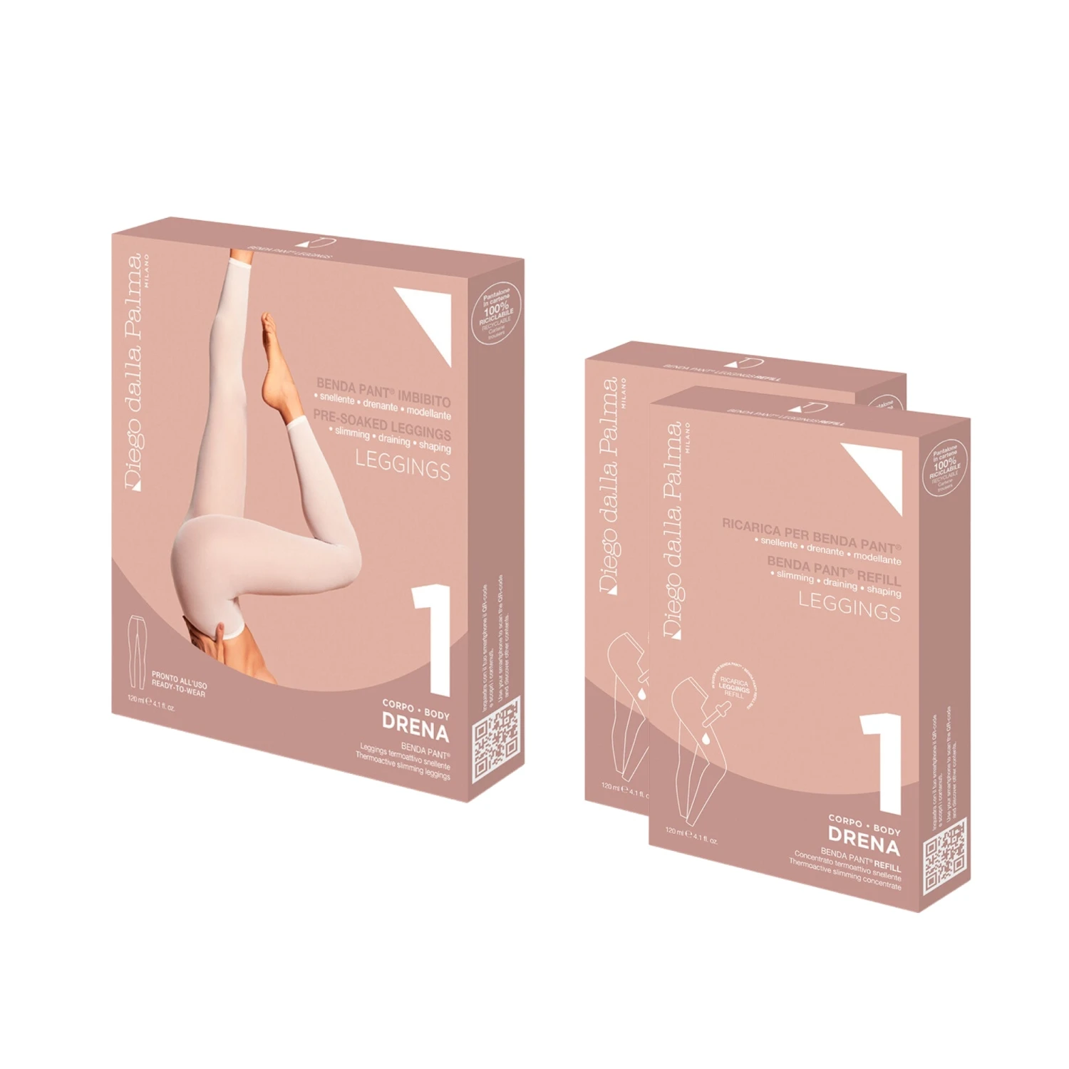 – Leggings imbibiti in tessuto benda, Made in Italy e tailor made. Taglia unica che si adatta a tutte le fisicità e lungo fino alla caviglia per agevolare l’azione drenante.
