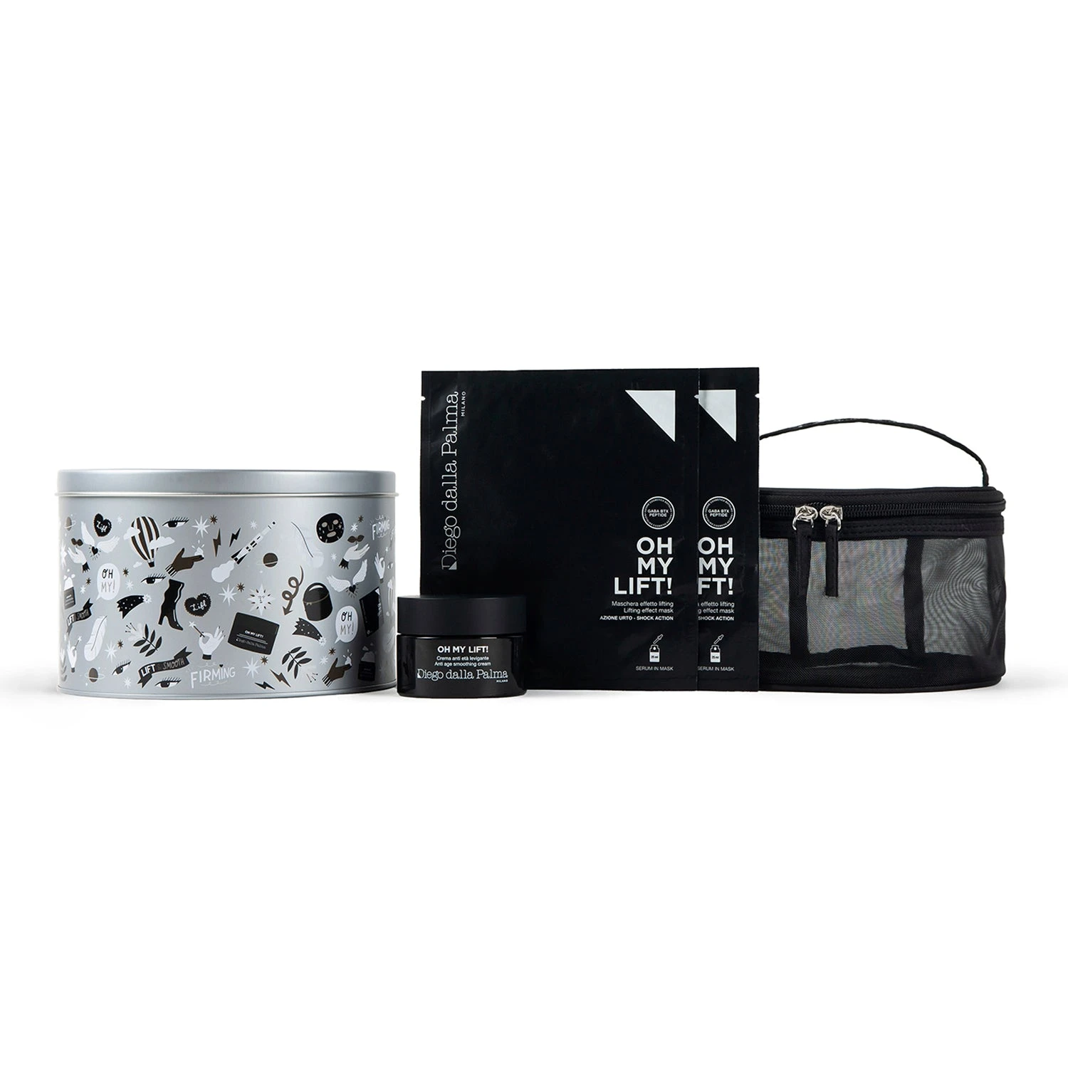 – Maschera effetto lifting (2pz): leviga i segni del tempo e distende le rughe di espressione regalando una sensazione di pelle tonica e trattata, percepibile da subito. Imbibita con 25ml di siero concentrato.