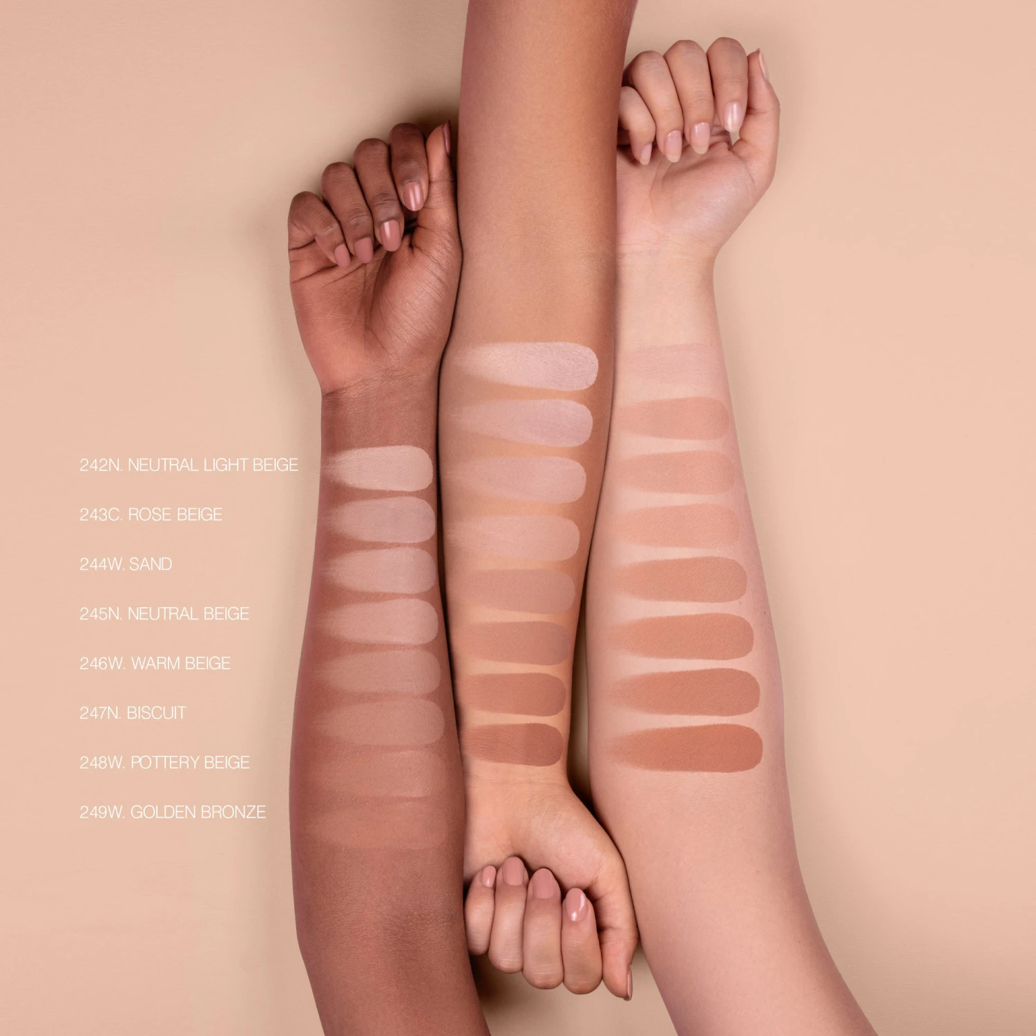 Fondotinta dalla texture fluida e leggera, priva di olii e con proprietà sebo-assorbenti. Mimetizza le imperfezioni grazie al suo film ultra-sensoriale, privo di spessore e dal comfort assoluto. Arricchito di polveri sferiche ad effetto soft focus che assicurano un finish naturalmente opaco.